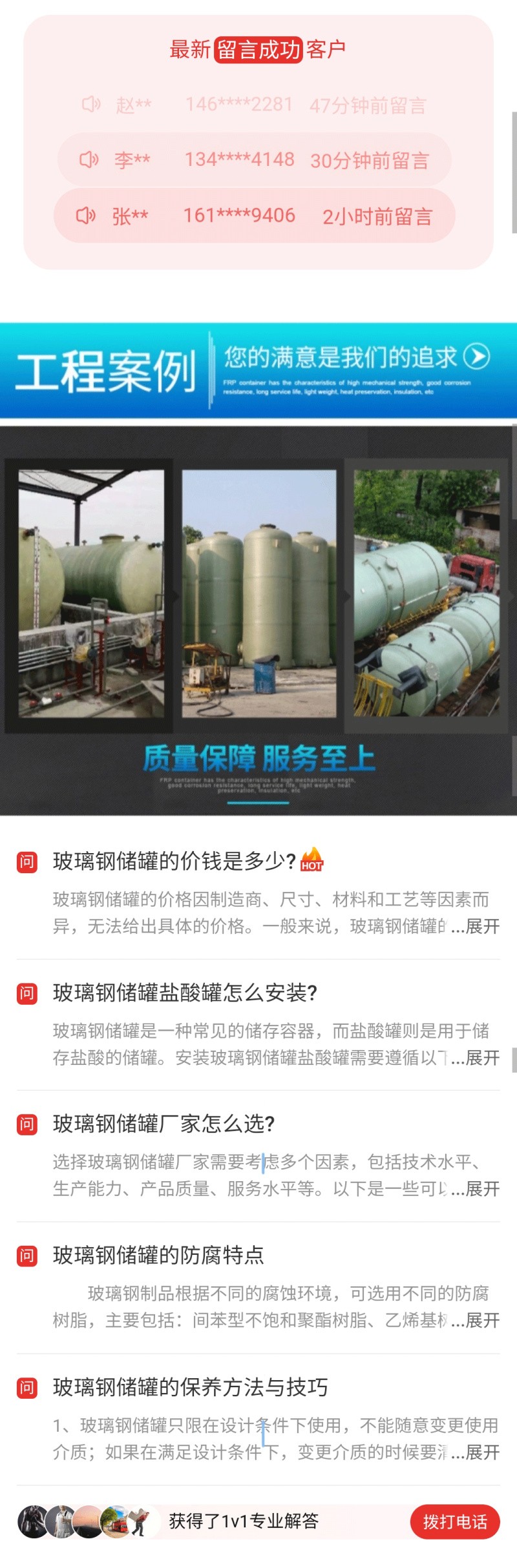 1、玻璃鋼儲罐只限在設(shè)計條件下使用,不能隨意變更使用介質(zhì);如果在滿足設(shè)計條件下,變更介質(zhì)的時候要清洗干凈;